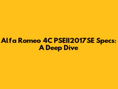Hey guys! Today, we're diving deep into the specifications of a seriously cool car: the Alfa Romeo 4C PSEII2017SE. This isn't just another sports car; it's a statement. We're going to break down everything that makes this model special, from its engine and performance to its design and unique features. Whether you're a die-hard Alfa Romeo fan or just curious about what makes this particular 4C tick, you're in the right place. So, buckle up, and let's get into the nitty-gritty details of the Alfa Romeo 4C PSEII2017SE!